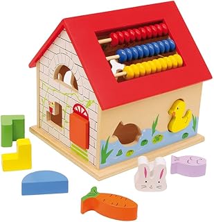 Small Foot 10648 Motorikhaus aus stabilem, griffigem Holz, leichtes Ineinanderstecken der einzelnen Hauselemente, schult Konzentration und Geschicklichkeit
