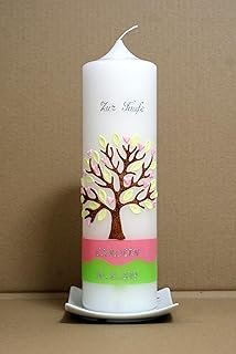 Taufkerze Baum rosa (25x7cm) mit Karton, wird NUR auf Kundenwunsch für Sie gefertigt. Bei uns bekommen sie keine Massenware. Jede Kerze für sich, ist ein Unikat.