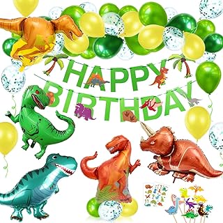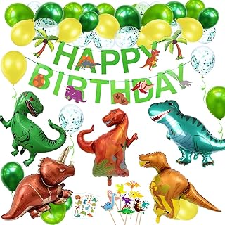 KATELUO Dschungel Party Dekoration, Dschungel Geburtstag Dekorationen Junge, Folienballons Dinosaurier, Alles Gute zum Geburtstag Bannerdekoration für Kinder Jungen und Mädchen(3)