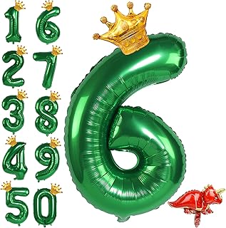 GRESAHOM Dino Geburtstagsdeko Jungen 6 Jahre, Dinosaurier Luftballons 6. Geburtstag Grün, Riesen Folienballon Zahl 6, Dinosaurier Kindergeburtstag Deko, Dschungel Geburtstag Ballons für Junge Mädchen