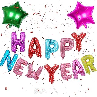 Happy New Year Ballon Banner, Happy New Year Luftballon Dekoration, Neues Jahr Dekoration der Silvesterparty, Happy New Year Folienballon für Silvester Deko 2022 (Bunt)