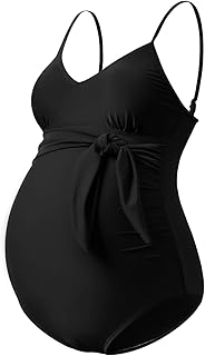 Maternity Swimsuit One Piece Front Tie Pregnancy Swimwear V Neck Bathing Suit Monokini,Black,XL