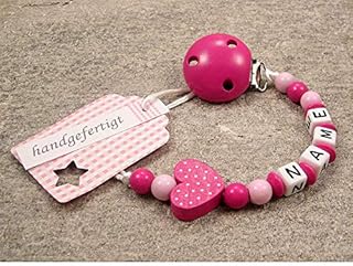 Baby SCHNULLERKETTE mit NAMEN - Schnullerhalter mit Wunschnamen - Mädchen Motiv Herz in rosa