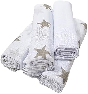 Baby Mulltücher 5 Stück im Set 70x70 cm mit Sternen in taupe 100% Baumwolle Spucktücher Musselin Mullwindeln ÖKOTEX Typ486