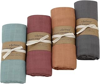 LifeTree Solide Baby Pucktücher Musselin Tuch - Große 120x120 cm Musselin Babydecken Bambus Baumwolle Swaddle Wrap, Spucktücher & Deck Kinderwagen - 4 Stück Mulltücher Baby Mullwindeln