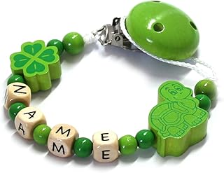 Baby Schnullerkette mit Perlen aus Holz und Wunschname.Schildkröte grün neutral