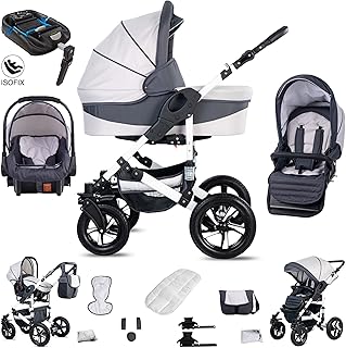 Friedrich Hugo Hamburg | 4 in 1 Kombi Kinderwagen + ISOFIX | Luftreifen | Farbe: White & Grey