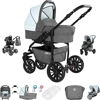 Friedrich Hugo Hamburg | 3 in 1 Kombi Kinderwagen | Luftreifen | Farbe: Grey & Babyblue