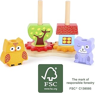 Steckspiel aus Holz, FSC® 100%-Zertifiziert, aus handlichen Bausteinen mit bunten Motiven, Beweglichkeit durch drehbare Zahnräder, trainiert Hand-Augen-Koordination und Motorik