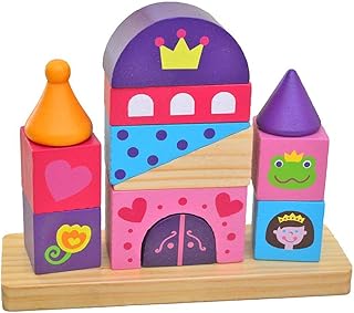 Tooky Toy Schloss Steckspiel Holzspielzeug mit süßen Motiven - Burg Turm zum Lernen und zur Motorik Schulung Ihres Kindes mit 5 verschiedenen Steck-Formen ab 3 Jahren - ca. 15 x18,5 x 6 cm