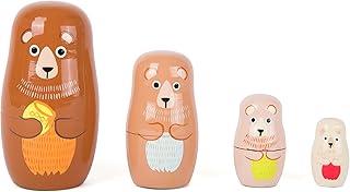 Small Foot 10621 Matrjoschka-Bärenfiguren aus Holz in Vier verschiedenen Größen und Farben, schult die Hand-Augen-Koordination und eignet Sich als Dekoration