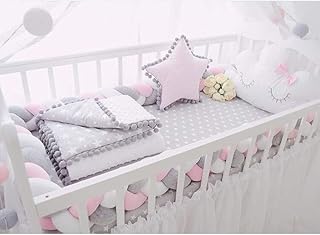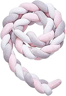 GLITZFAS Bettumrandung geflochten Bettschlange Babybett Baby Nestchen Kinderbett Stoßstange Weben Bettumrandung Kantenschutz Kopfschutz 2m/3m (Hellrosa, 3m)