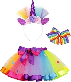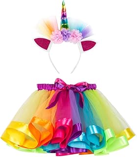 Tüllrock Mädchen mit Einhorn Haarreif Mädchen Tutu Bunt Kinder Regenbogen Ballettrock Tanzkleid Mädchen Rock Kostüm Layered