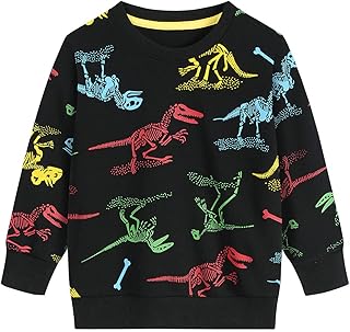 EULLA Jungen Dinosaurier Sweatshirt Kinder Baumwolle Warme Pullover Langarm Tops 1-7 Jahre