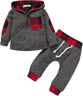 Babykleidung Sets Säugling Kleinkind Jungen Mädchen Sweatshirt Set Winter Herbst Kleidung Outfit 0-3 Jahre alt, Baby Plaid Kapuze Langarm Tops + Hosen